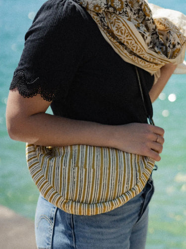 Discover the Yellow Stripe fanny pack, the must-have accessory to transform your everyday life. Elegant and versatile, it can be worn casually around the waist or stylishly across the body. Despite its compact size, it offers ample space for your essentials—keys, phone, and children's treasures. Combining lightness and style, it's the perfect companion for all your adventures.