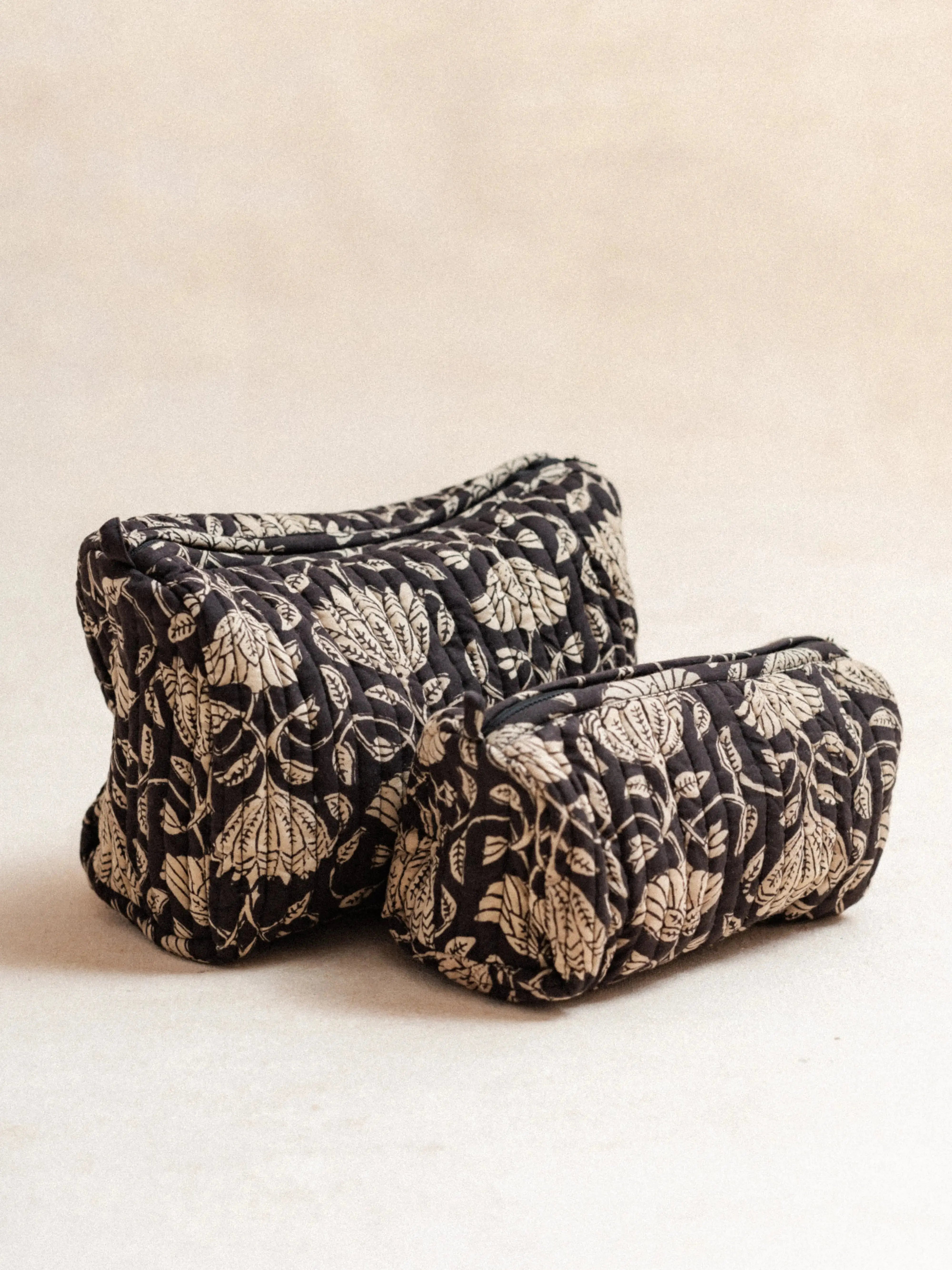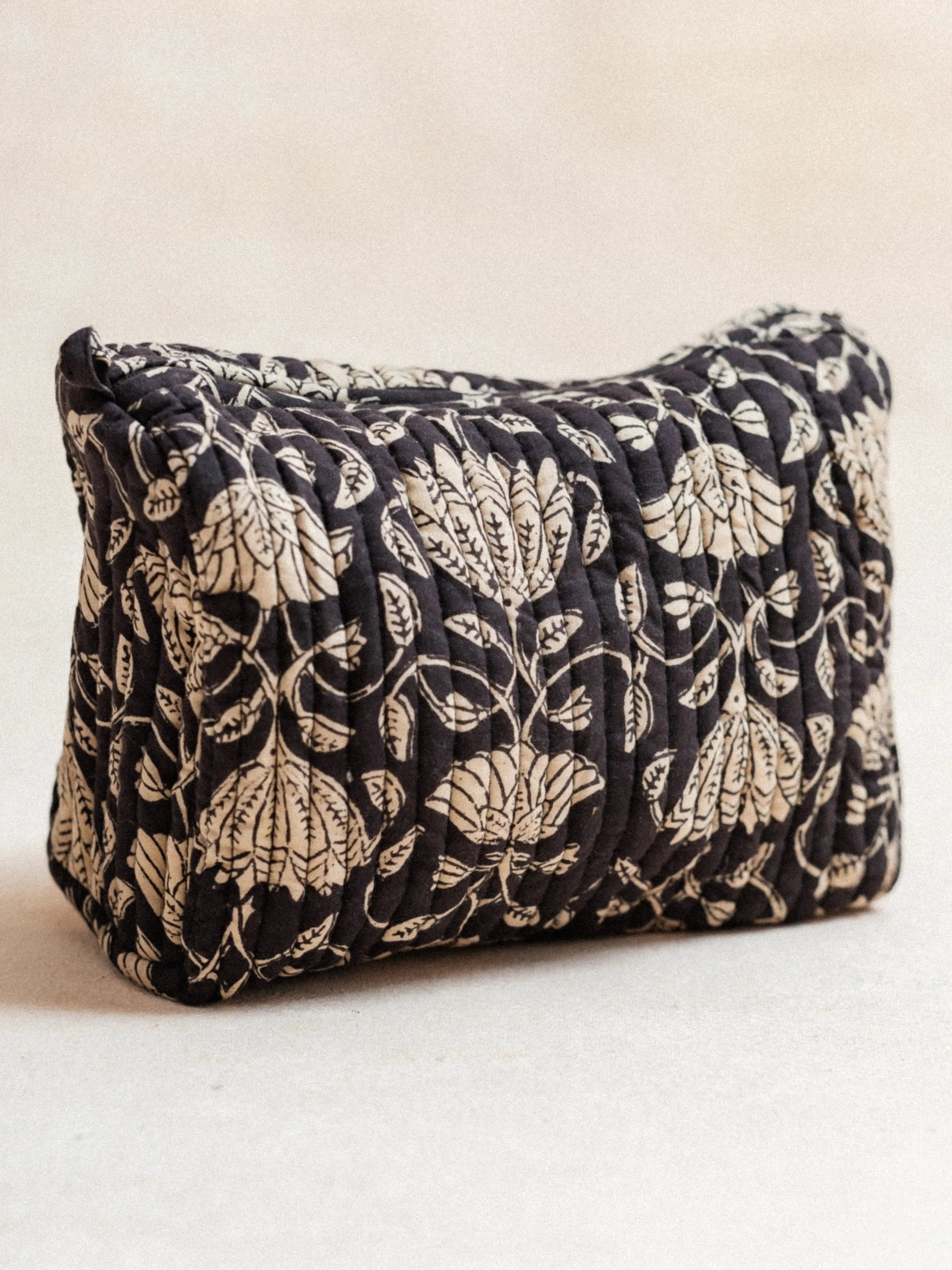 Quilted pouch in hand-printed Lotus cotton using Blockprint
