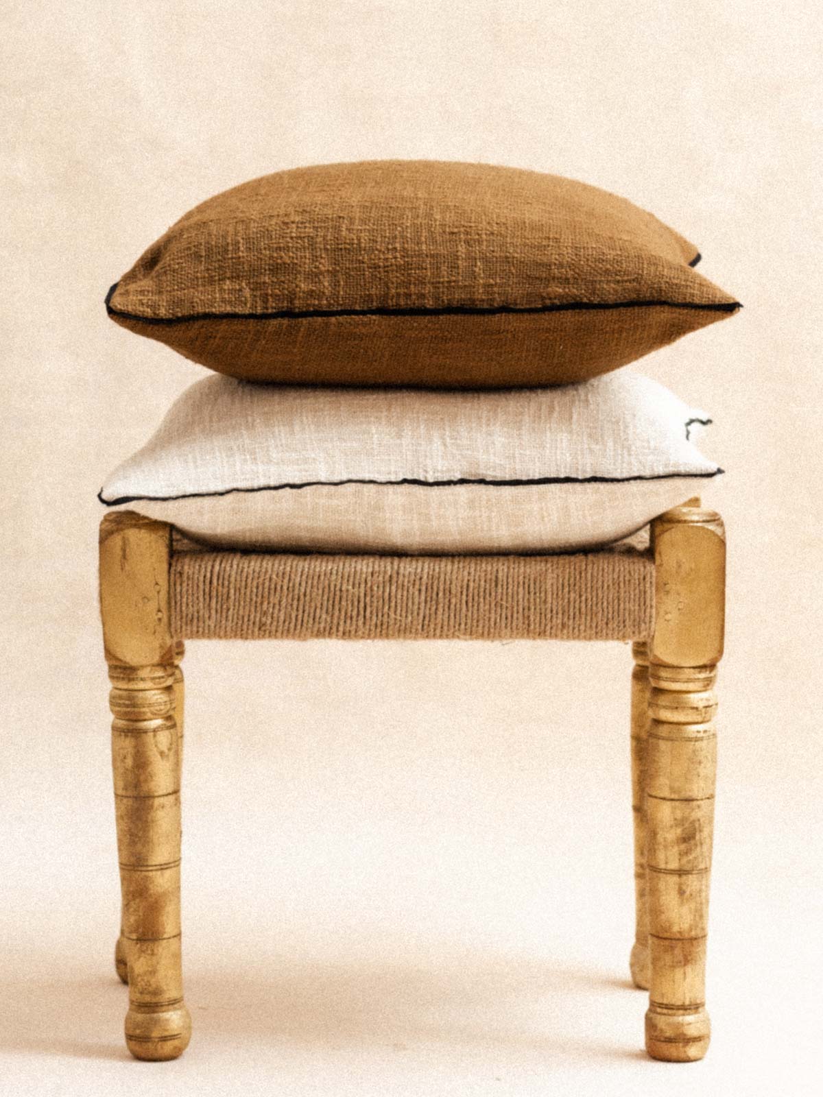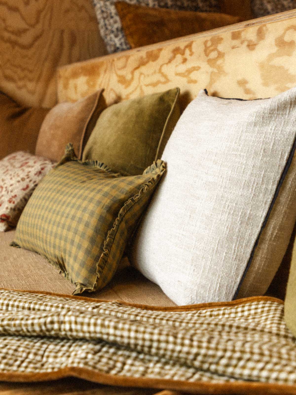 Our cover stands out thanks to its 100% traditional Indian khadi cotton fabric, its entirely hand-spun and woven, and its refined finish with contrasting black piping. A discreet zip at the top makes it easy to care for, while its style harmonizes perfectly with coffee gingham patterns and decorative prints.