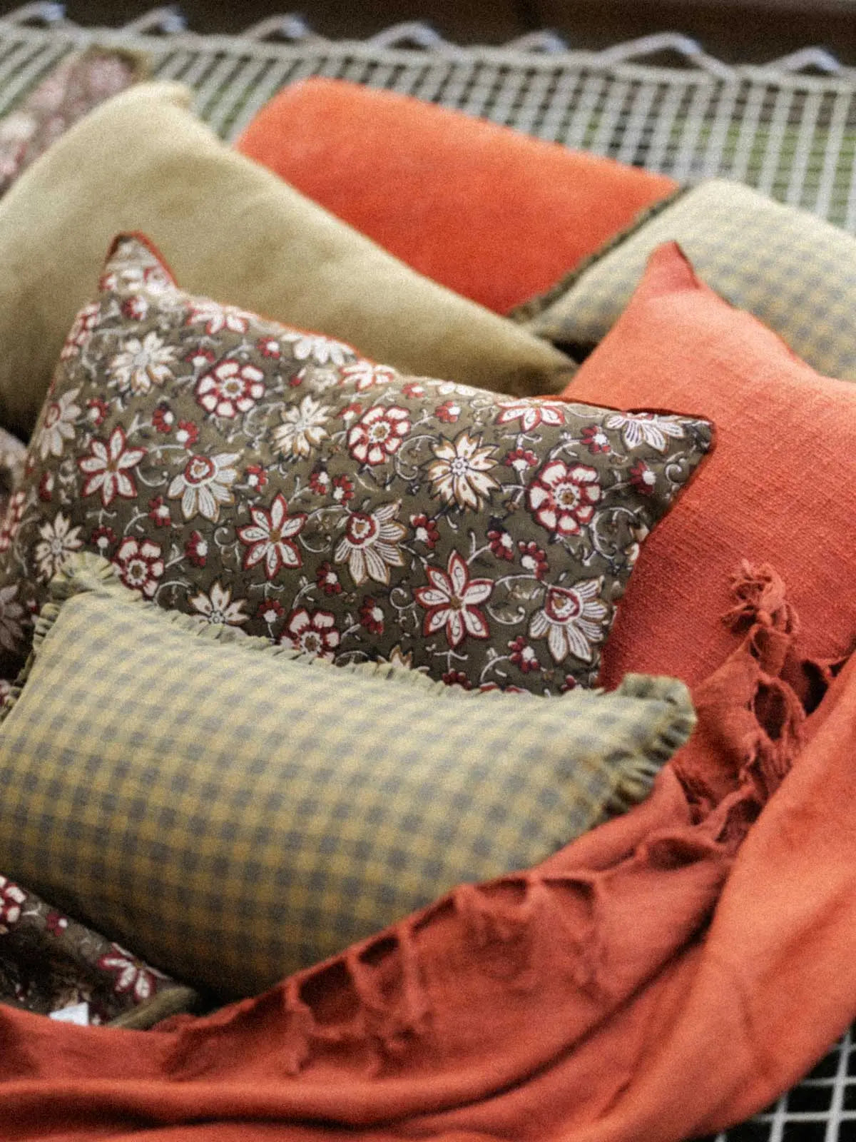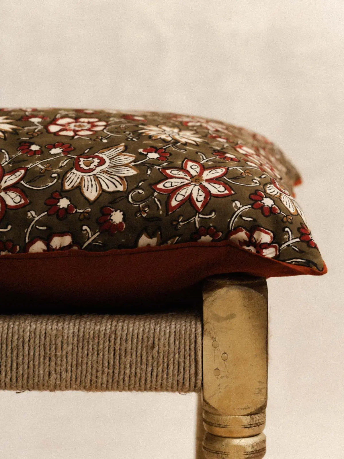 • Reversible cushion cover: block print/ plain terracotta poplin
