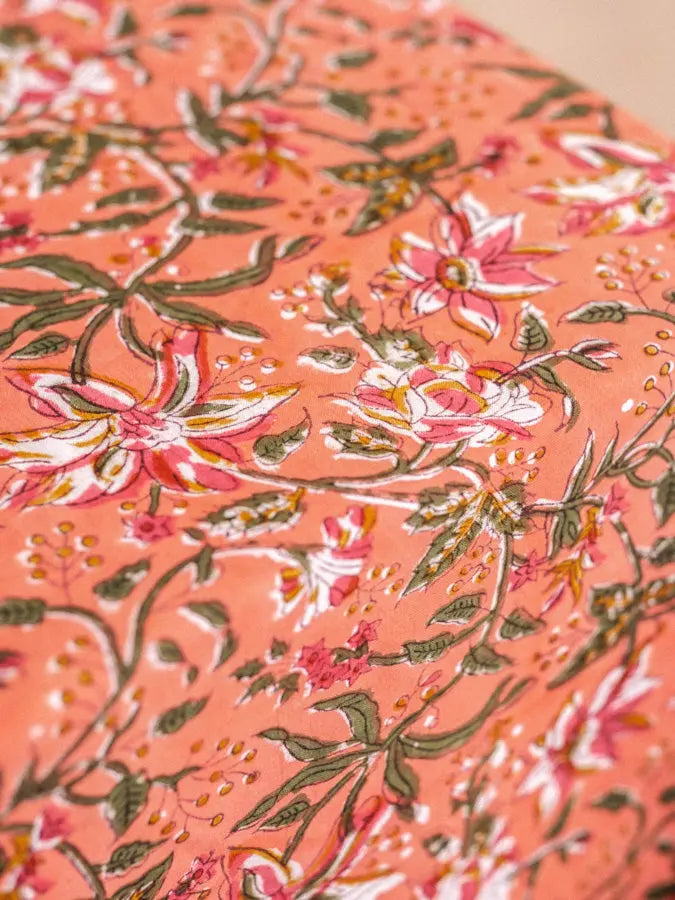 100% heavy cotton canvas, hand-printed in artisanal block print in our workshop in Jaipur.