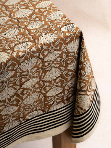 The Neiroli floral tablecloth, a true piece of Indian craftsmanship, is distinguished by its floral prints made entirely by hand using the traditional block-print technique. Available in several sizes to fit all tables - square, rectangular and round - it transforms each table into a unique work of textile art.