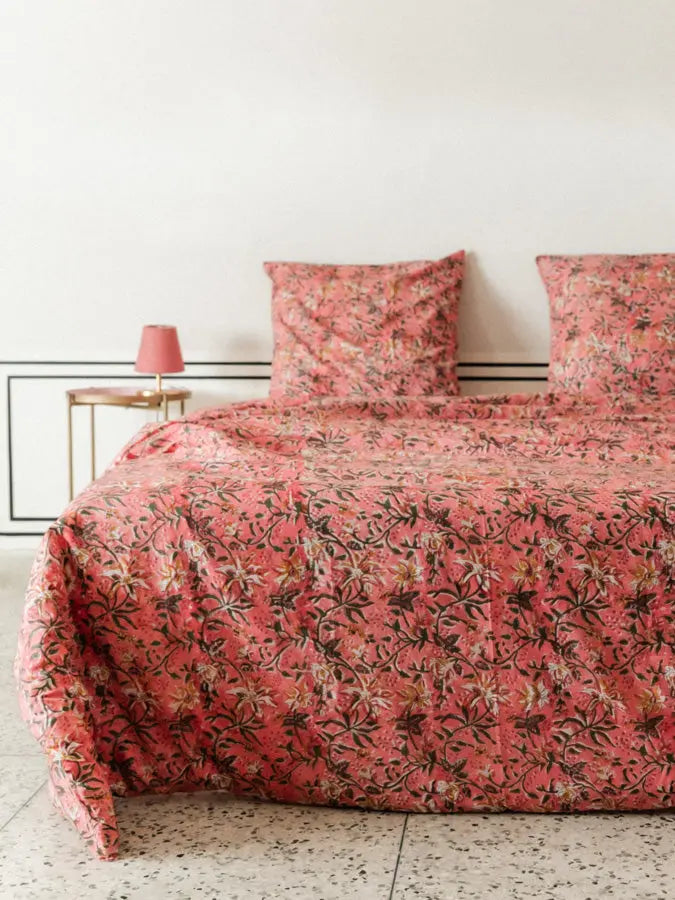 Parure de lit fleurie - Housse de couette et taies - Leyli Rose - kirane Parure de lit fleurie - Housse de couette et taies - Leyli Rose - kirane