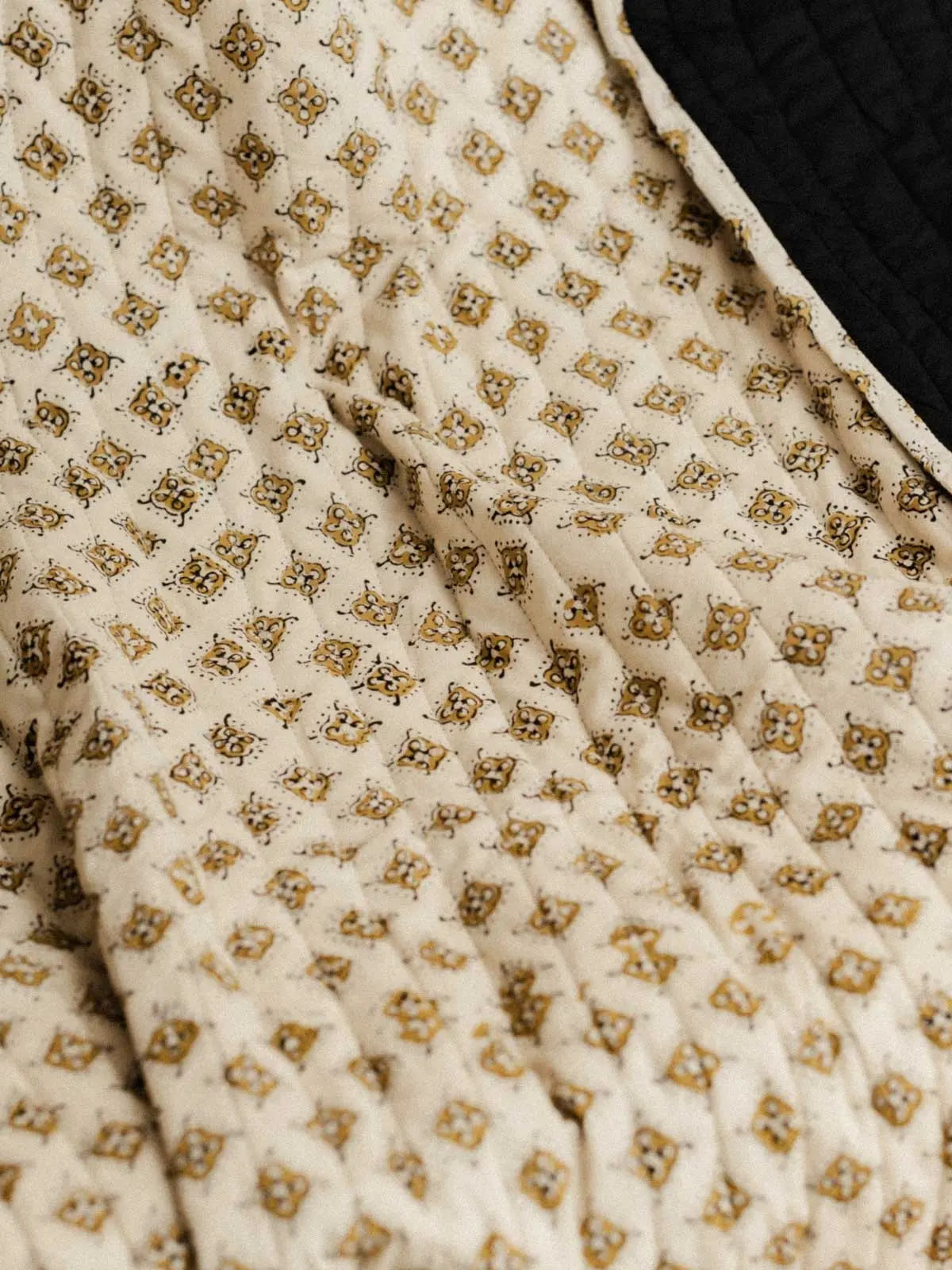 This throw blanket features a hand-printed block print on one side and a plain side. The interior is filled with batting for added softness and comfort. Carefully hand-stitched, each piece is unique, crafted in our workshop in Jaipur.